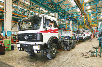 在北奔重汽公司總裝車間,工人們正在緊張地忙碌著。生產(chǎn)線已連續(xù)幾個月處于滿負荷狀態(tài),即使一線工人兩班倒,目前收到的訂單也已安排到7月底。作為國內(nèi)高檔重車的知名品牌,北奔重汽公司已經(jīng)連續(xù)3年保持了快速增長行業(yè)之最。