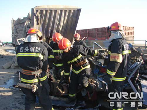 | 中廣網(wǎng)呼和浩特11月5日消息(記者鄭穎 通訊員張偉)今天早上7:20左右在包東高速公路22公里—23公里處發(fā)生貨車追尾事故,追尾車輛中的5人當(dāng)場(chǎng)死亡。