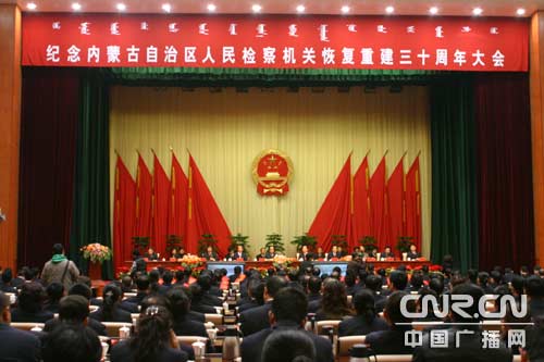 內(nèi)蒙古黨委書記、人大常委會主任儲波為大會發(fā)來的題詞中說:“三十年來,我區(qū)檢察機關(guān)依法履行各項職責(zé),不斷強化法律監(jiān)督,努力維護公平正義,為保障國家安全和祖國北疆穩(wěn)定,為建設(shè)富強、民主、文明、和諧的內(nèi)蒙古做出了積極貢獻。”