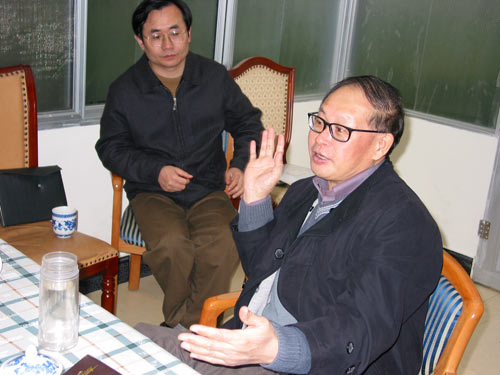 金樹(shù)華同志(右)在2004年中央人民廣播電臺(tái)《西部紀(jì)事》策劃會(huì)上
