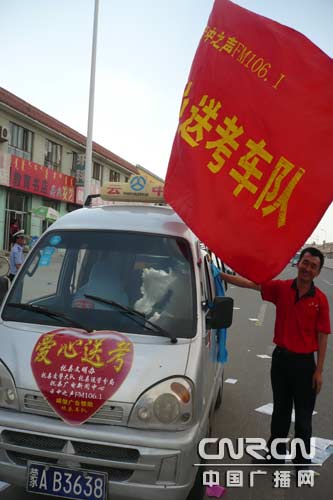 | 中廣網(wǎng)呼和浩特6月8日消息 (記者鄭穎 呼和浩特臺記者張景植)2009年高考期間,云中之聲廣播組織托縣廣大出租車駕駛員免費(fèi)接送考生參加高考,此次云中之聲“溫情六月、愛心送考”公益活動(dòng)是內(nèi)蒙古托縣首次舉行的愛心送考活動(dòng)。云中之聲廣播是由呼和浩特人民廣播電臺和托縣廣播電視新聞中心聯(lián)合制作播出。