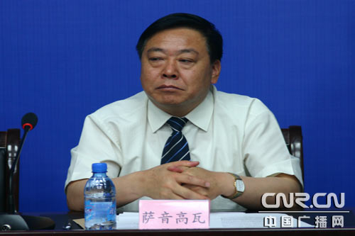 中國電信內蒙古分公司副總經理薩音高瓦在新聞發(fā)布會上發(fā)言(攝影 王芳)