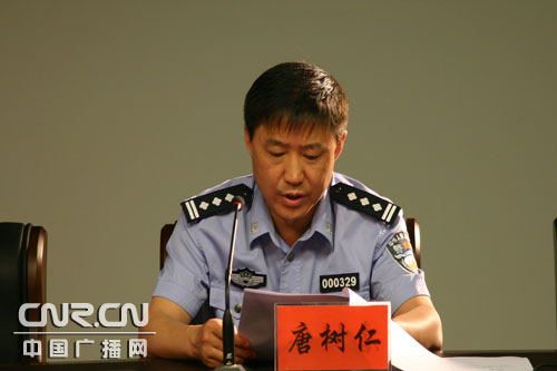 內(nèi)蒙古自治區(qū)公安廳禁毒總隊辦公室主任唐樹仁在發(fā)布會上發(fā)言(攝影 王芳)