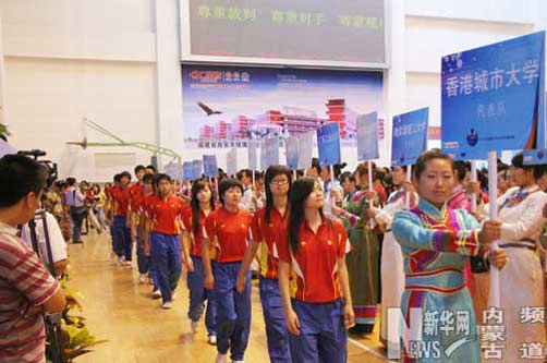 7月29日,香港城市大學代表隊在第十五屆全國大學生乒乓球錦標賽開幕式上入場。