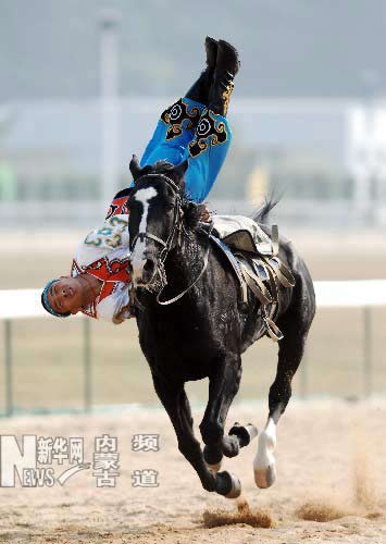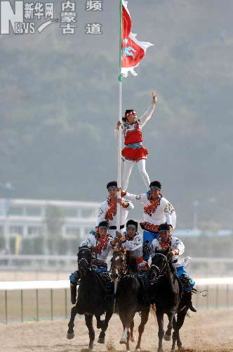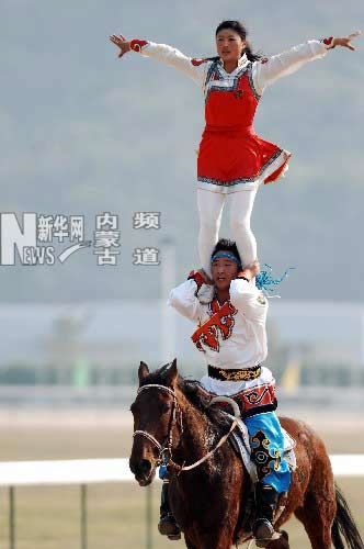 11月11日,內蒙古馬術隊隊員在進行表演。當日,第八屆全國少數(shù)民族傳統(tǒng)體育運動會馬術表演在廣州馬術場舉行。 新華社記者沈橋攝