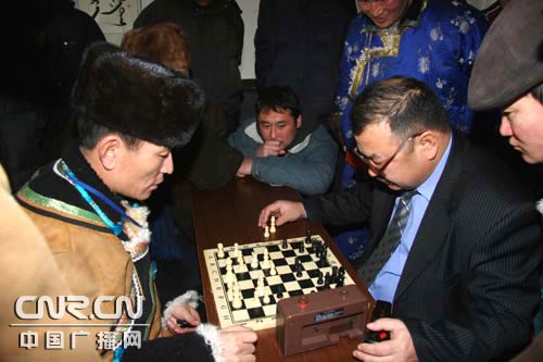 中廣網(wǎng)呼和浩特1月29日消息 (記者阿都?xì)J 通訊員宋金龍)在日前結(jié)束的內(nèi)蒙古東烏旗中蒙兩國蒙古象棋邀請賽中,兩國選手經(jīng)過激烈角逐,東烏珠穆沁旗牧民選手脫穎而出,奪取了比賽前四名,來自蒙古國東方省的選手烏力吉巴特爾獲得了第五名。