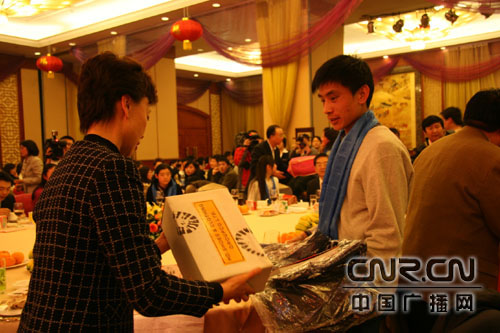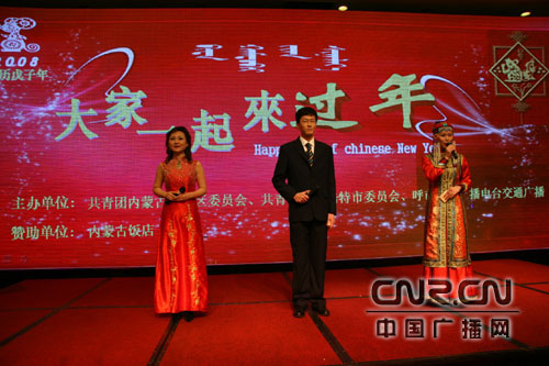 中廣網(wǎng)呼和浩特2月4日消息(記者文偉 通訊員任艷軍) 2月3日(農(nóng)歷臘月二十七)晚上,由內(nèi)蒙古團(tuán)委、呼和浩特團(tuán)委、呼和浩特人廣播電臺(tái)交通頻率聯(lián)合舉辦的“大家一起來(lái)過(guò)年??青春共建和諧家園,關(guān)愛進(jìn)城務(wù)工青年”活動(dòng)在內(nèi)蒙古飯店隆舉行。來(lái)自呼和浩特市的200余名進(jìn)城務(wù)工青年代表出席了活動(dòng),其中包括40多位來(lái)自湖南、湖北、安徽、云南、廣東、江蘇等地因雪災(zāi)無(wú)法返鄉(xiāng)的打工者。