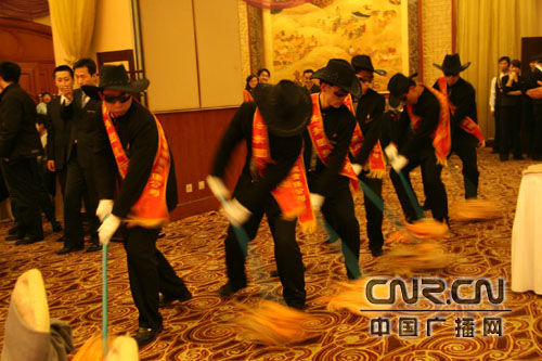 飯店工作人員為外來(lái)務(wù)工人員送上精彩舞蹈