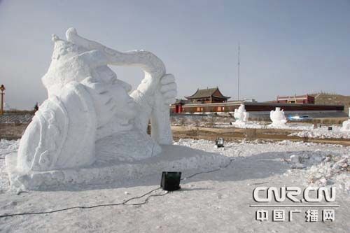 中廣網(wǎng)呼和浩特2月3日消息 (記者阿都欽)入冬之后,內(nèi)蒙古東烏珠穆沁旗所在地烏里雅斯太鎮(zhèn)的庫倫廟廣場成為城鎮(zhèn)居民、牧民群眾喜愛的休閑場所。這里具有濃厚民族風情的雪雕展將這座嚴冬中的邊陲小鎮(zhèn)裝扮的更加靚麗。