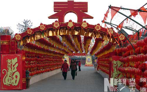 2月19日,游園的市民從呼和浩特市五塔寺元宵燈會入口走過。 元宵節(jié)臨近,呼和浩特各社區(qū)、街道辦事處組織了元宵節(jié)燈會等各種形式的游園活動。(張領(lǐng))