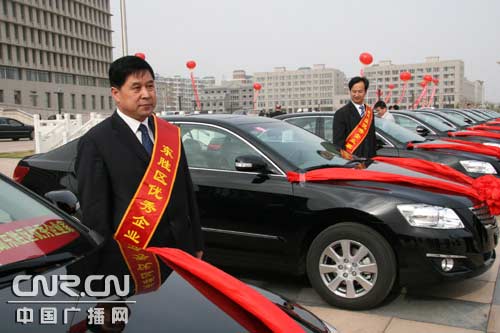 中廣網(wǎng)呼和浩特4月21日消息(記者鄭穎)4月20日下午,在東勝區(qū)政府大會(huì)堂中,東勝區(qū)區(qū)委政府將20個(gè)由瑞典皇家設(shè)計(jì)大師設(shè)計(jì)的純金鑲鉆獎(jiǎng)杯和10輛豐田轎車(chē)發(fā)給為社會(huì)作出突出貢獻(xiàn)的企業(yè)家。