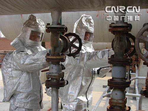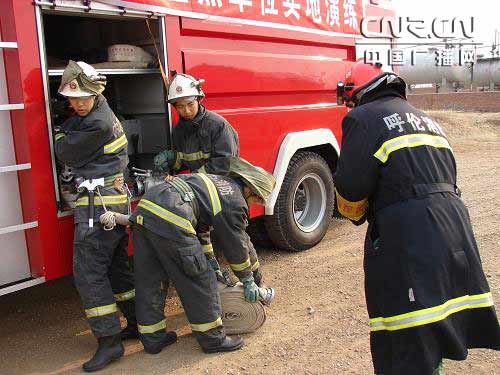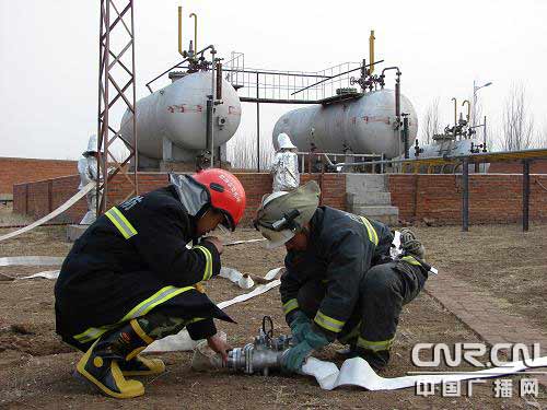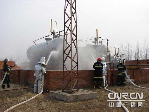 4月23日,阿榮旗消防大隊官兵深入鶴榮液化氣站進行了春季消防安全演練周活動。到場后,官兵首先對該單位進行了全面熟悉,對滅火預案進行了完善。接著,指揮員根據演練計劃,按照滅火預案進行了實戰(zhàn)演練。15時10分,假設鶴榮液化氣站的罐區(qū)“1號”儲罐突然“泄露”并發(fā)生火災,請求救援。接警后,阿榮旗消防大隊立即出動3臺消防車及16名官兵迅速到達現場,經過現場偵查,泄漏著火處是因為儲罐上一閥門老化引起,空氣中燃氣的濃度已經達到極限極易發(fā)生爆炸。根據現場的特殊情況,消防指揮員立即制定作戰(zhàn)方案,全體官兵分為三組立即展開緊急救援。第四組設置警戒線,把員工全部撤離至安全區(qū);另一組出2支水槍對泄漏設備周圍的空氣進行稀釋,阻止氣體進一步向其他區(qū)域擴散,防止發(fā)生爆炸;第三組出一支開花一支直流冷卻罐體第四組的兩名戰(zhàn)士身著隔熱服,在水槍的掩護下爬到儲罐上更換老舊閥門。命令下達后,全體參戰(zhàn)官兵立即全面展開了滅火救援行動。15分鐘后,閥門更換火災成功撲滅。隨后,4把水槍繼續(xù)稀釋空氣中的殘余氣體,直到確認已經泄漏的氣體濃度降至正常范圍內。20分鐘后,演練圓滿結束。
