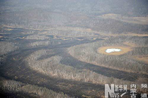 這是航拍的內(nèi)蒙古大興安嶺森林草原過火區(qū)(4月21日攝) 新華社記者張領(lǐng)攝