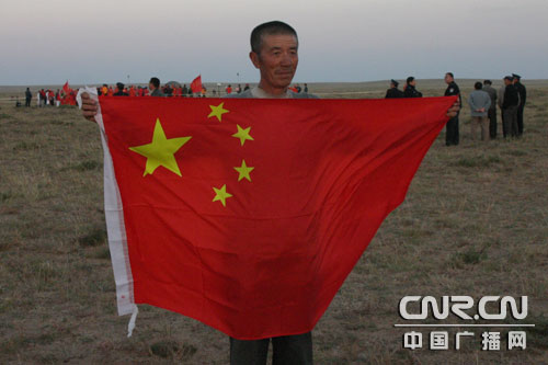 中廣網(wǎng)四子王旗9月28日消息(記者鄭穎 攝影馬立峰)“神舟”七號載人飛船平安降落在寧靜吉祥的阿木古郎草原上。阿木古郎草原兒女以各種形式熱烈歡迎“神七”平安回家。