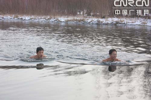 | 中廣網呼和浩特12月3日消息(記者鄭穎 通訊員紀明國)時值隆冬,進入12月份以來,內蒙古扎蘭屯市氣溫有時已達到零下二十幾度?胺Q冬季一絕的“勇敢者的游戲”冬泳,卻進行得如火如荼。冬泳成了雅魯河畔一道特有的風景。