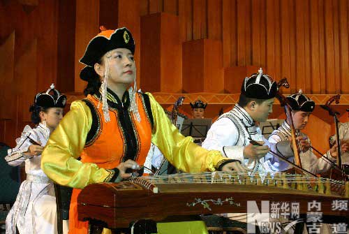 是蒙古國樂手用蒙古古箏演奏中國樂曲《梁!。 新華社記者李澤兵攝