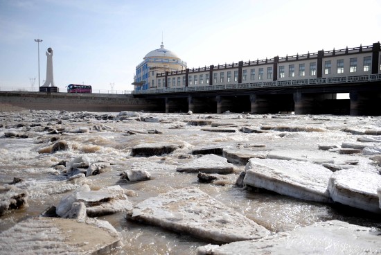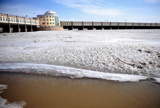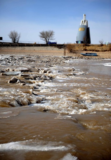 2月24日,冰凌流過黃河內(nèi)蒙古磴口三盛公水利樞紐