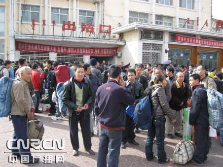 中廣網(wǎng)呼和浩特2月26日消息(記者鄭穎 通訊員張強(qiáng)、崔玉平、原野)連日來,包頭東火車站迎來了農(nóng)民工旅客返包高峰,大批四川、甘肅籍農(nóng)民工從包頭東站下車,轉(zhuǎn)乘汽車前往鄂爾多斯市、包頭周邊區(qū)縣打工。據(jù)了解,受國際金融危機(jī)影響,今年來內(nèi)蒙古打工人數(shù)大大超過往年,往年南下前往珠三角、長三角地區(qū)的打工人員今年選擇了北上。內(nèi)蒙古呼包鄂金三角地區(qū),經(jīng)濟(jì)快速增長需求大量勞動(dòng)力,因此吸引了大量農(nóng)民工涌入。為確保農(nóng)民工安全返包,包頭鐵路公安處為此采取了多項(xiàng)舉措:一是加強(qiáng)查危防爆,加大對進(jìn)站口、售票廳的檢查,做到不漏查、不漏檢,確保農(nóng)民工旅客出行到達(dá)安全;二是為維護(hù)出站秩序采取了拉設(shè)警戒帶、合理布崗分流等方法,引導(dǎo)農(nóng)民工旅客有序出站;三是加強(qiáng)出站口、售票廳、候車室等重點(diǎn)部位的監(jiān)控巡視,確保農(nóng)民工旅客的人身財(cái)產(chǎn)安全;四是組織宣傳小分隊(duì)為農(nóng)民工旅客熱情服務(wù),及時(shí)為農(nóng)民工旅客提供防扒、防騙知識(shí)服務(wù)及乘車問路咨詢。