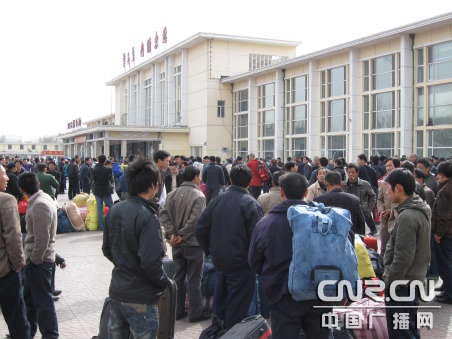 農(nóng)民工下車后聚集在車站廣場