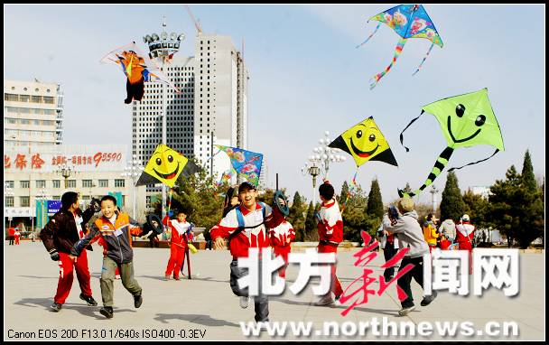 在3月25日舉行的風(fēng)箏比賽上,小學(xué)生們開心地放飛風(fēng)箏!凹堷S上青天,一去三千尺!便逶≈猴L(fēng),包頭市昆區(qū)包鋼實(shí)驗(yàn)一小在阿爾丁廣場舉行了放飛夢想風(fēng)箏比賽,600多名小學(xué)生在春天的懷抱中放飛了夢想。(周蕾)