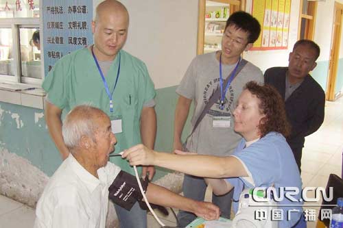 聽說醫(yī)療隊(duì)來了,全鎮(zhèn)21個(gè)行政村,3個(gè)居委會(huì)200多名農(nóng)民,排起了長(zhǎng)隊(duì),腰酸的、腿痛的、胃不好的……平時(shí)忙于勞作的農(nóng)民們很少有時(shí)間有精力趕幾十里路到鎮(zhèn)衛(wèi)生院去好好檢查身體,趁著這個(gè)機(jī)會(huì),好好檢查一下。老外醫(yī)生為繁榮村的張萬福老漢測(cè)量了血壓并作了診斷,為他免費(fèi)領(lǐng)取了所需藥品。并通過翻譯讓其家屬開展日常護(hù)理。張萬福老漢欣慰地說:“自己患高血壓多年,需經(jīng)常吃藥,幸好老外醫(yī)療隊(duì)來鎮(zhèn)里義診,我相信她們的醫(yī)術(shù),自己的病會(huì)逐步好轉(zhuǎn)!