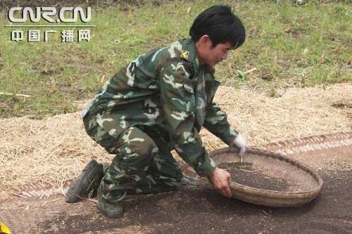 搶險(xiǎn)期間幫助當(dāng)?shù)剞r(nóng)民搶收菜子