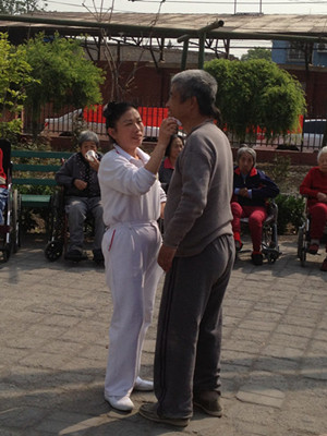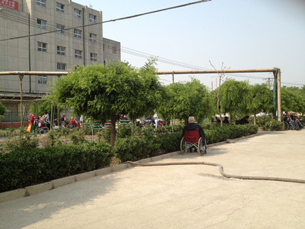 走進大門,就聽到隱隱約約的歌聲,老人們已經(jīng)早早坐在院子里,聽著蔡琴的《何日君再來》,享受著陽光的溫暖。鶴童敬老院有100多位老人,大部分老人生活不能自理,院子里的老人都坐在輪椅上。