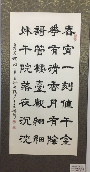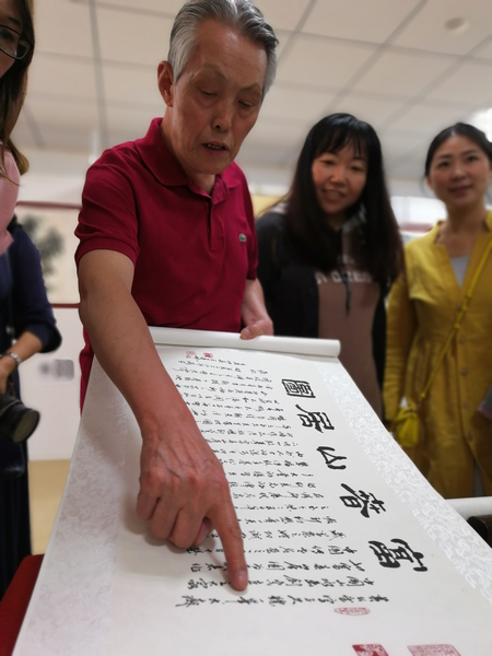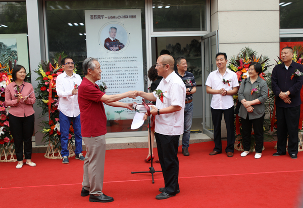開幕式中,王春林向北京市石景山區(qū)圖書館贈送《王春林書畫作品集》。他表示,從藝60年也曾困頓,疑惑,動搖,但經(jīng)多位名師指點,最終堅持了下來,所以他深刻體會到熱愛書畫藝術(shù)卻無路可尋的苦悶。近10年來,他不斷堅持書畫創(chuàng)作,還創(chuàng)辦了無逸齋書畫工作室,幾乎以全年無休的狀態(tài),致力于推動國畫書法的民間教學(xué),陸續(xù)培養(yǎng)了150名學(xué)生,讓他們在各自的學(xué)習(xí)、生活、工作領(lǐng)域擁有了令人羨慕的藝術(shù)特長。