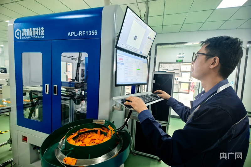 在位于青海省海南藏族自治州共和縣的青海青晴智能科技有限責(zé)任公司的智能數(shù)字化工廠(chǎng)內(nèi),全自動(dòng)生產(chǎn)設(shè)備正在生產(chǎn)畜牧產(chǎn)業(yè)智能數(shù)字耳標(biāo)。