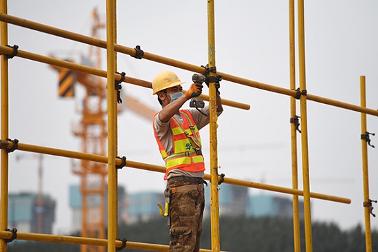 中建八局廣西分公司工人在廣西南寧市華威路一處建筑工地施工。新華社 圖