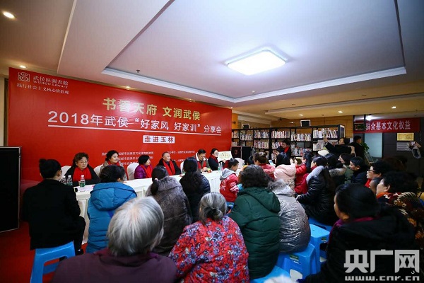 央廣網成都1月28日消息(記者韓民權)為踐行社會主義核心價值觀,使文化融入百姓生活。1月27日,由成都市武侯區(qū)圖書館主辦的“書香天府?文潤武侯‘好家風 好家訓’分享會”第一站走進成都武侯區(qū)玉林街道,將文化活動送到基層市民身邊。當天,成都民俗學家與市民代表們分享了自己的好家風故事,并將優(yōu)秀的家風家訓存入了“家風銀行”。