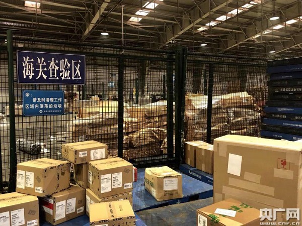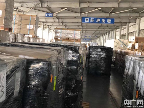 中國(guó)國(guó)航成都貨運(yùn)站貨物一級(jí)監(jiān)管區(qū)內(nèi)的海關(guān)查驗(yàn)區(qū)(央廣網(wǎng)記者樊承志 攝)