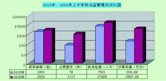 上半年,質(zhì)監(jiān)部門還加大了質(zhì)量違法案件查處力度。全省質(zhì)監(jiān)系統(tǒng)“12365”舉報投訴熱線共接聽電話2824起,與去年同期相比,投訴舉報有所上升,投訴主要為電梯、頁巖磚、汽配及手機(jī)配件、加油機(jī)、小家電、珠寶玉器、農(nóng)資、服裝、金銀飾品等質(zhì)量以及高速公路計量等問題。全省質(zhì)監(jiān)系統(tǒng)立案查處1117件,涉案貨值3857.05萬元。