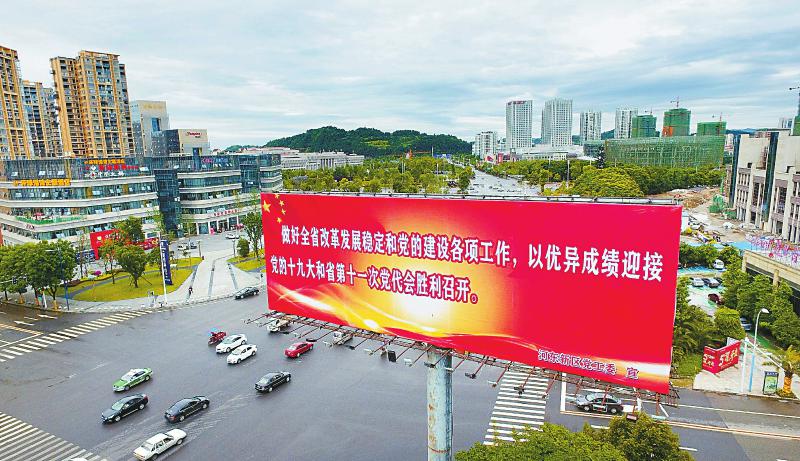 遂寧市在市區(qū)街頭設(shè)置了迎接省第十一次黨代會(huì)召開(kāi)的巨幅標(biāo)語(yǔ)牌。