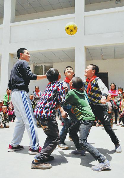日前,在昭覺縣金曲鄉(xiāng)中心校,綿陽市涪城區(qū)對口幫扶彝區(qū)工作組體育教師王智正在指導(dǎo)留守兒童爭頂頭球! 〕珊推 攝(視覺四川)