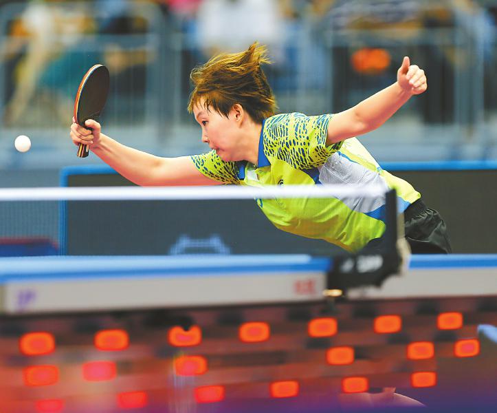 朱雨玲在全運(yùn)會乒乓球女團(tuán)決賽中。本報(bào)記者 尹鋼 攝