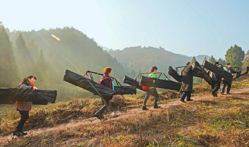 新年伊始,南江縣團結(jié)鄉(xiāng)回龍村“暖意融融”。近日,“扁擔(dān)學(xué)!钡牧x務(wù)宣傳隊隊員們用扁擔(dān)挑起宣傳展板、演出道具,徒步走進該村,用群眾喜聞樂見的快板書、三句半、方言小品等形式,宣傳黨的十九大精神。