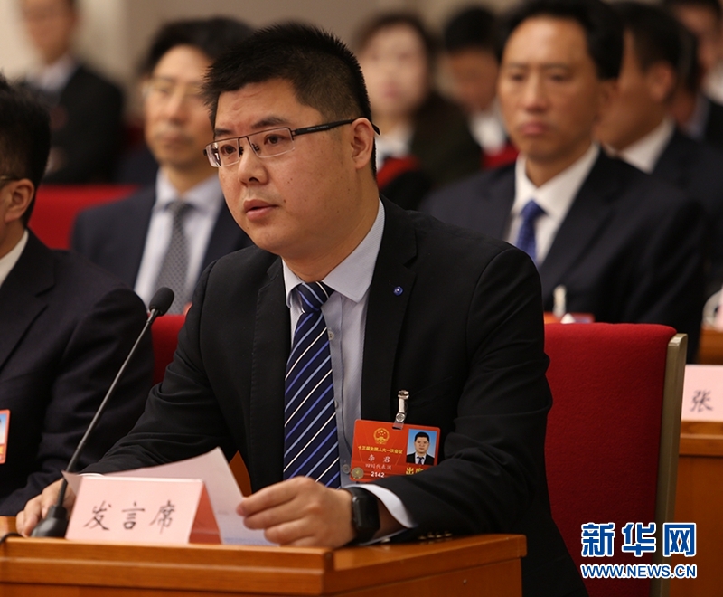 全國(guó)人大代表、四川省蒼溪縣白驛鎮(zhèn)岫云村黨支部書記李君在發(fā)言。新華網(wǎng)曹鵬攝