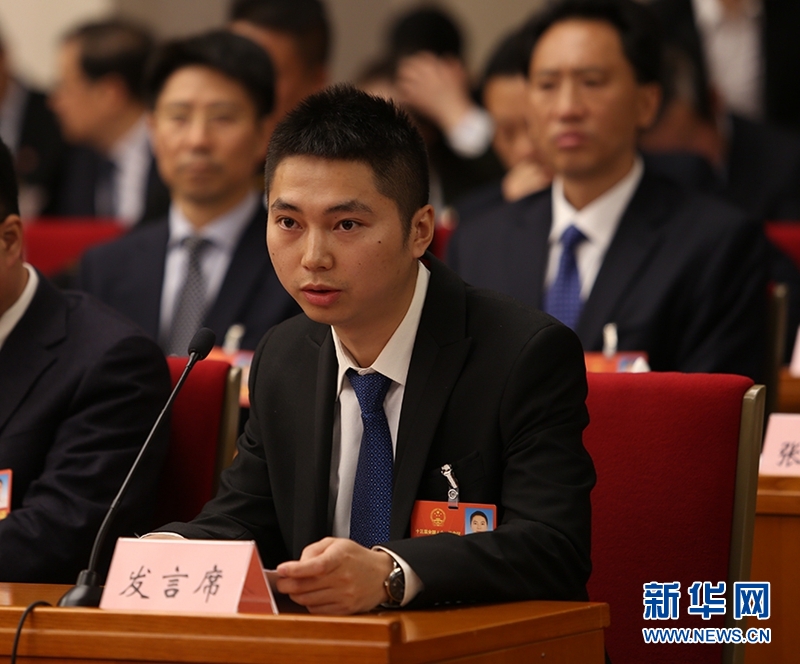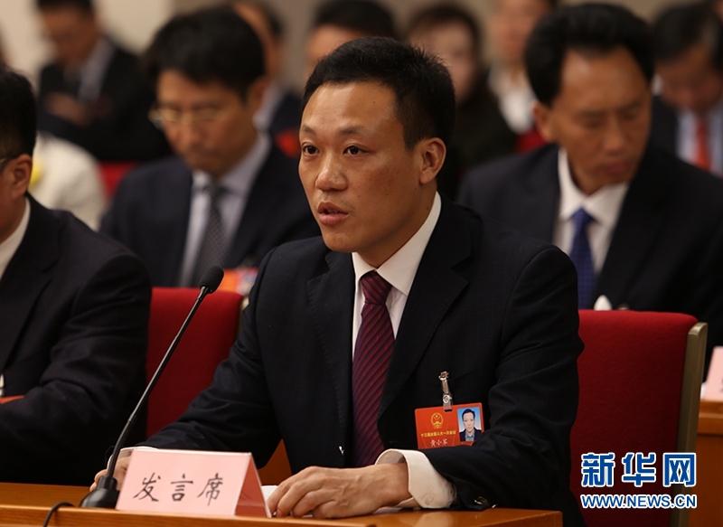 全國(guó)人大代表、四川省渠縣巨光鄉(xiāng)金土村黨支部第一書記黃小軍在發(fā)言。新華網(wǎng)曹鵬攝