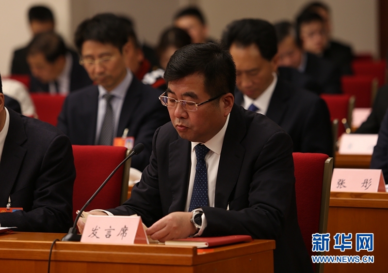 全國(guó)人大代表,四川省樂(lè)山市委副書記、市長(zhǎng)張彤在發(fā)言。新華網(wǎng)曹鵬攝