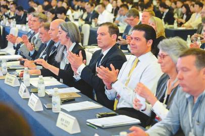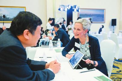 相聚 第四屆中美省州長(zhǎng)論壇上,兩國(guó)各地嘉賓相聚成都。本版圖片由 本報(bào)記者 郝飛 攝