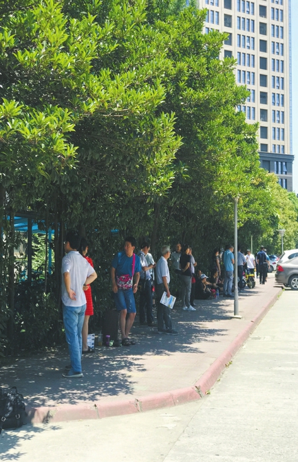 西南交大自主招生現(xiàn)場,家長們在烈日下焦急等待。