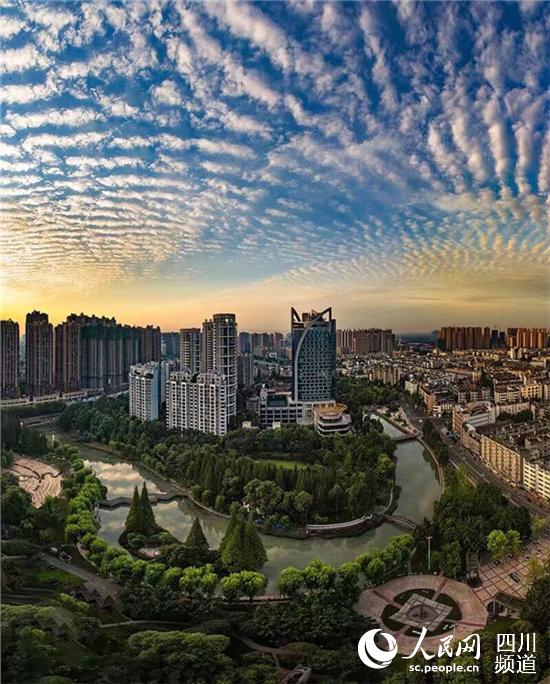 感性的答案是這樣的:近段時間,成都上空上演了數(shù)場精彩大戲,時而霞光初現(xiàn),將整個城市襯托得金光閃閃;時而一片湛藍(lán),朵朵白云似棉花糖一樣漂浮在城市上空;時而彩虹懸掛,講述著一半神秘一半美好的童話故事。匆匆路人從“低頭族”秒變“抬頭族”,原因竟是成都的一片天。
