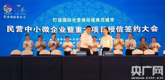 央廣網(wǎng)成都6月26日消息(邱櫟藝 通訊員 陳光余)11家銀行、25家企業(yè)參加了四川彭州今天舉行的打造國際化營商環(huán)境典范城市、民營中小微企業(yè)暨重大項目授信簽約儀式,這一儀式由彭州市財政局、彭州市稅務(wù)局、人民銀行彭州支行三家單位牽頭籌辦。當天,5個重大項目獲得授信44.46億元,中小微企業(yè)獲得授信3.45億元!柏敹愩y”聯(lián)動簽約(授信)儀式同時舉行,其中銀稅合作協(xié)議將精準支持民營小微企業(yè)融資和執(zhí)法合作等事項。
