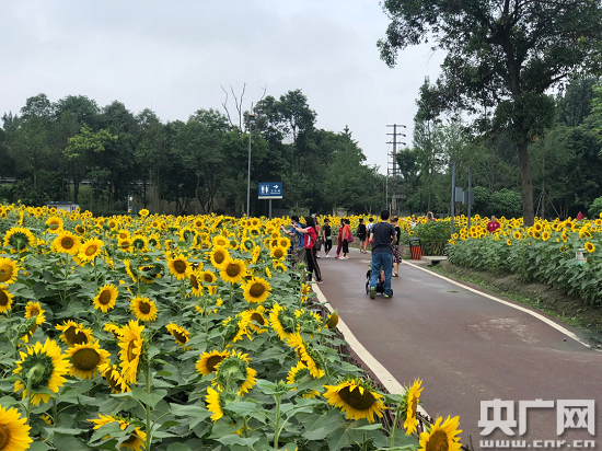 央廣網(wǎng)成都6月27日消息(邱櫟藝)6月下旬,成都天府芙蓉園向日葵花海進(jìn)入大面積盛花期,近40000平方米向日葵花海向陽而生,競(jìng)相綻放,吸引了不少市民、攝影愛好者前往拍照打卡。據(jù)悉,6月中旬至7月下旬是向日葵花海的最佳觀賞期。