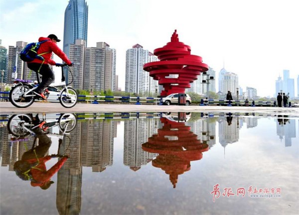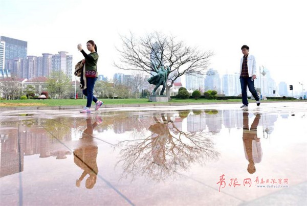 近日,山東青島迎來多場降雨,城市因為一次次雨水的沖刷而變得干凈、清涼。雨后,五四廣場上存留的水洼如鏡子一樣,把城市風光變成了對稱的影像,構(gòu)成了一幅幅獨特的畫面,也許不經(jīng)意間,你就會與水中的倒影有一次美麗邂逅。