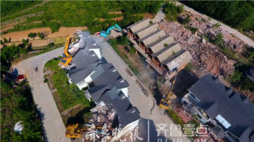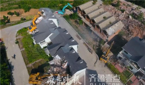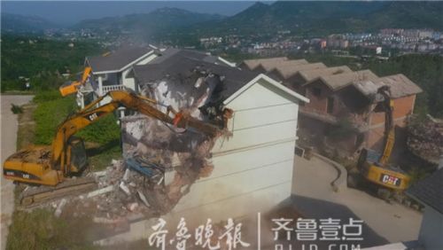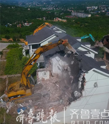 這里一共有46棟別墅,當天先拆除35棟,其余的11棟端午節(jié)前全部拆除,兩天前已提前斷水斷電。 齊魯晚報·齊魯壹點記者 周青先攝