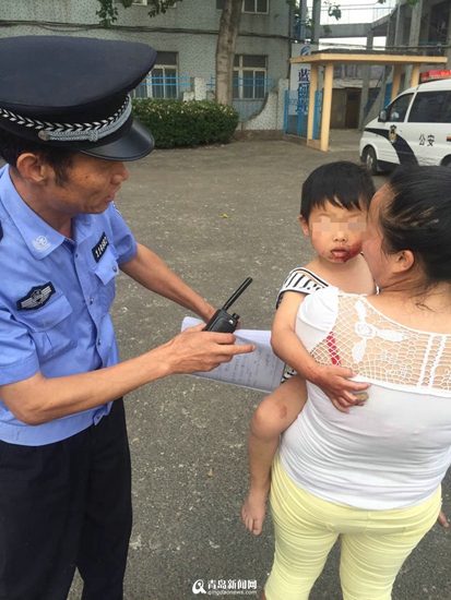 聰聰家住在青島中韓街道某學(xué)校的院內(nèi),家住二樓,一樓就是該學(xué)校的食堂操場(chǎng)。民警了解情況后,立即先到樓后院查看,發(fā)現(xiàn)地下有點(diǎn)血漬。跟著地下的血漬圍著學(xué)校進(jìn)行全面排查,詳細(xì)打聽(tīng),最終在學(xué)校的食堂處找到了孩子。見(jiàn)到孩子,廖女士一把抱住孩子,跟孩子哭做一團(tuán)。
