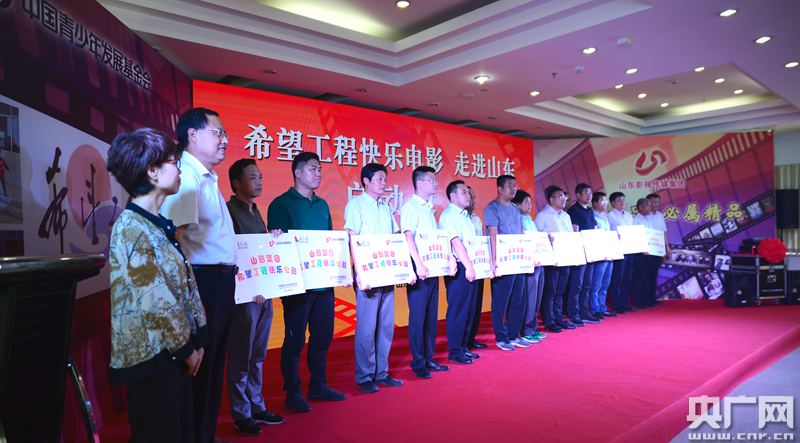 央廣網(wǎng)濟南9月19日消息(記者 劉海奎)為進一步貫徹落實黨中央精準扶貧、精準脫貧戰(zhàn)略部署,切實配合“文化、科技、衛(wèi)生三下鄉(xiāng)”行動的開展,中國青少年發(fā)展基金會攜手山東影視傳媒集團開展“希望工程快樂電影·走進山東”公益活動。9月19日,活動啟動儀式在濟南舉行,中國青少年發(fā)展基金會、中共山東省委宣傳部、共青團山東省委、山東省新聞出版廣電局、山東廣播電視臺、山東影視傳媒集團領(lǐng)導嘉賓以及13所學校第一書記、當?shù)卣I(lǐng)導、校長、教師和學生代表等參加了啟動儀式。
