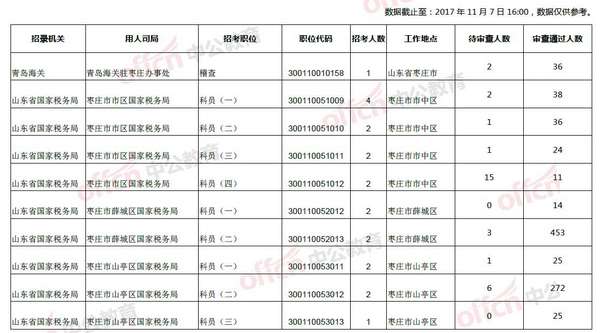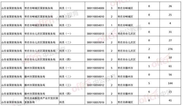 此次“國考”涉及棗莊的崗位有32個,共招錄63人。截至7日16時,涉棗崗位中報名人數(shù)最多的是棗莊市薛城區(qū)國家稅務(wù)局科員(二)崗位,報名人數(shù)達456人。該崗位要求學(xué)歷為本科及以上,不限基層工作最低年限、政治面貌,也不僅限應(yīng)屆高校畢業(yè)生報考,故吸引的報考人員較多。